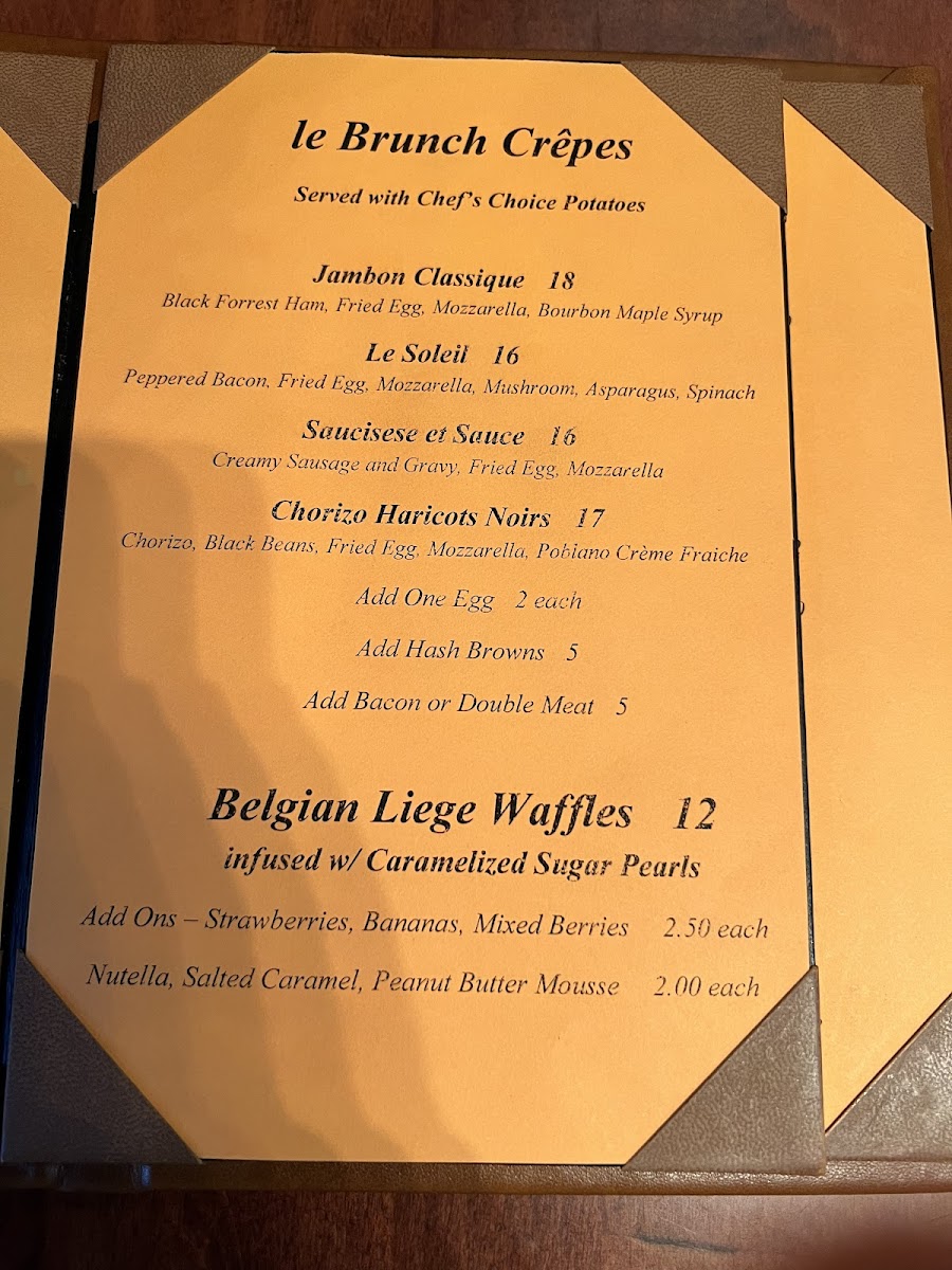 Welcome to Crisp Creperie, nestled in Cape Coral, Florida, where culinary artistry meets delightful flavors. Specializing in both savory and sweet crepes, the menu boasts a variety of expertly crafted dishes. Start with the indulgent Poulet Versailles for $20 or the classic Jambon Classique for $19. For brunch lovers, options like Le Soleil and Saucisese Et Sauce provide a delicious morning experience at affordable prices.